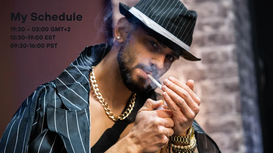 Erotikus tánc, Cigizős, Flexing, Mocskos beszéd, Megalázás, Élvezés, Maszturbálás, Hardcore, Kiverési utasítások, Bőr, Orgazmus, Cum Play, Pumpa, Sztriptíz